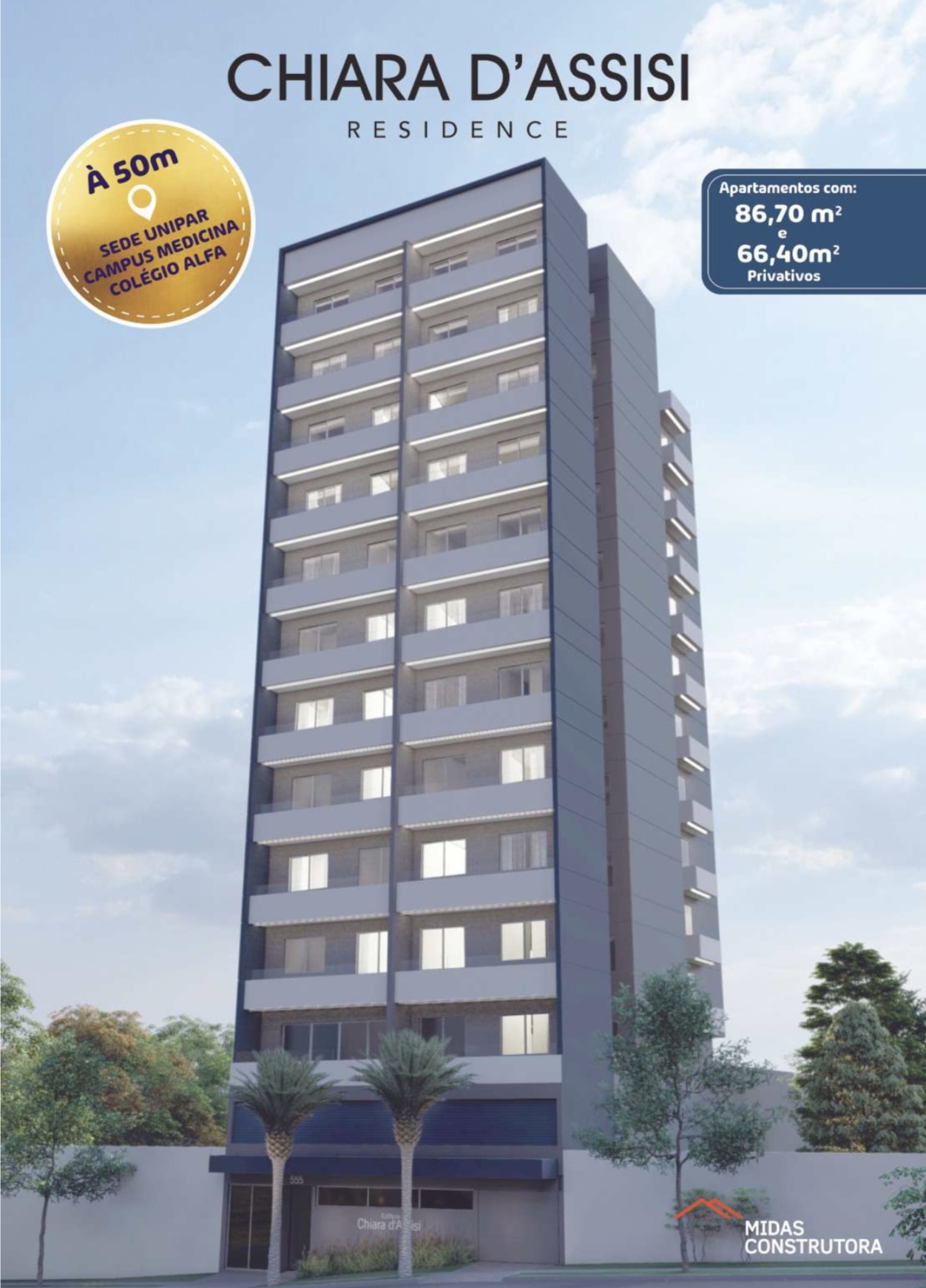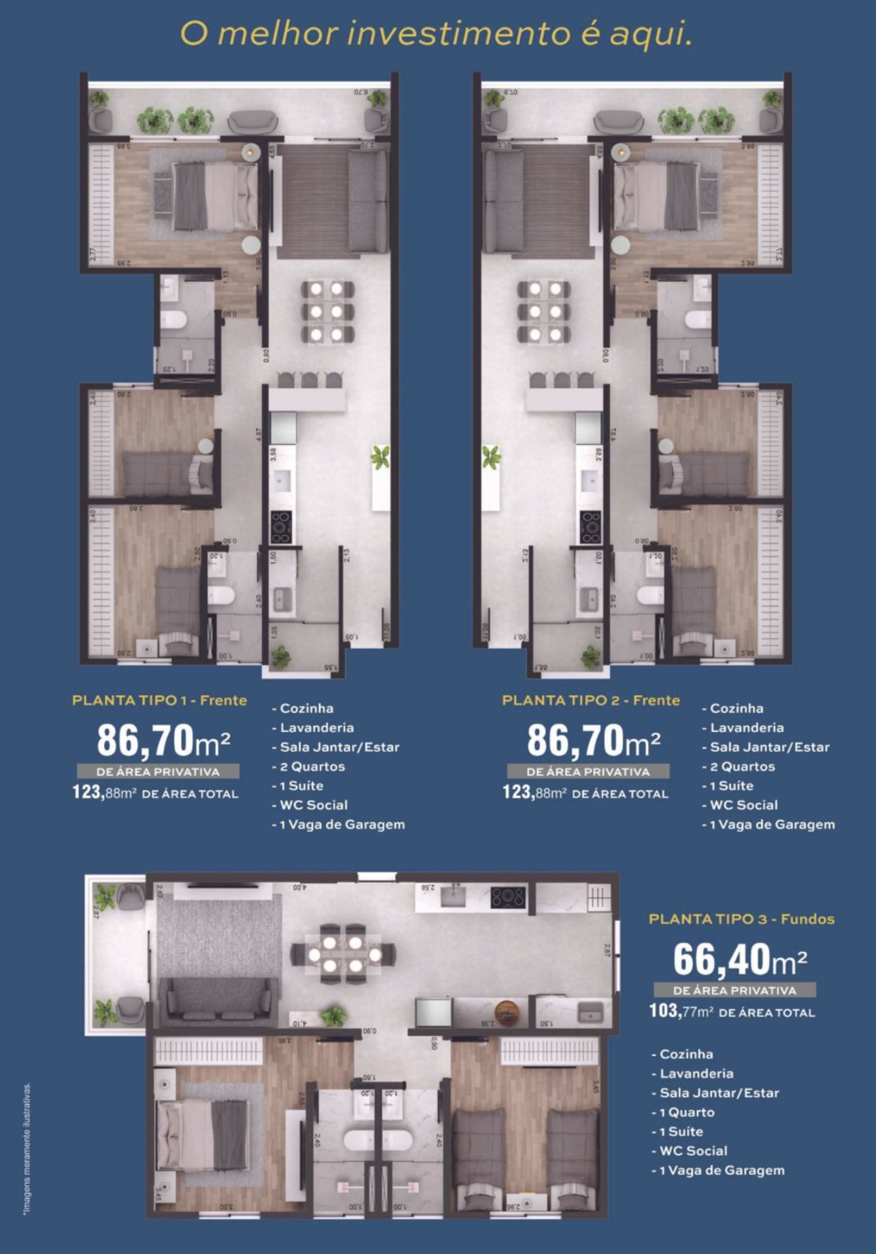 Opções de apartamentos com 86.70m2 de área privativa ou 66.40m2