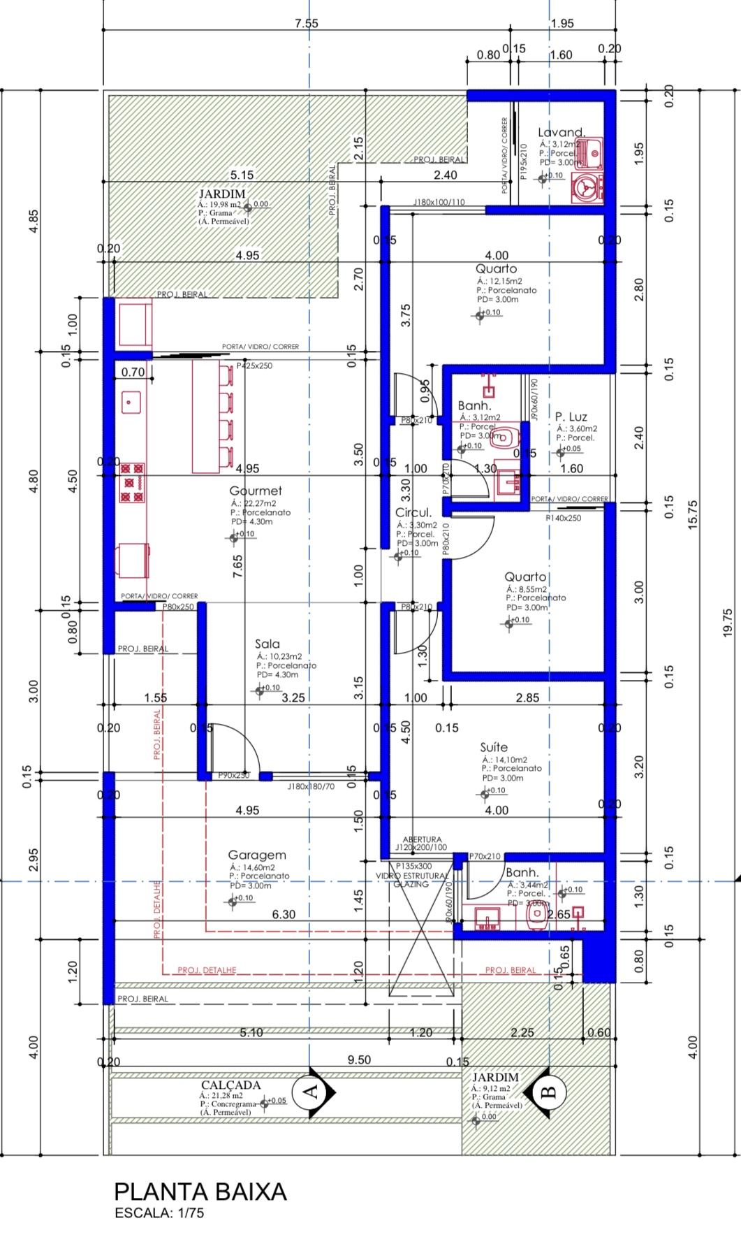 Área total: 187.62m² (9.50x19.75)