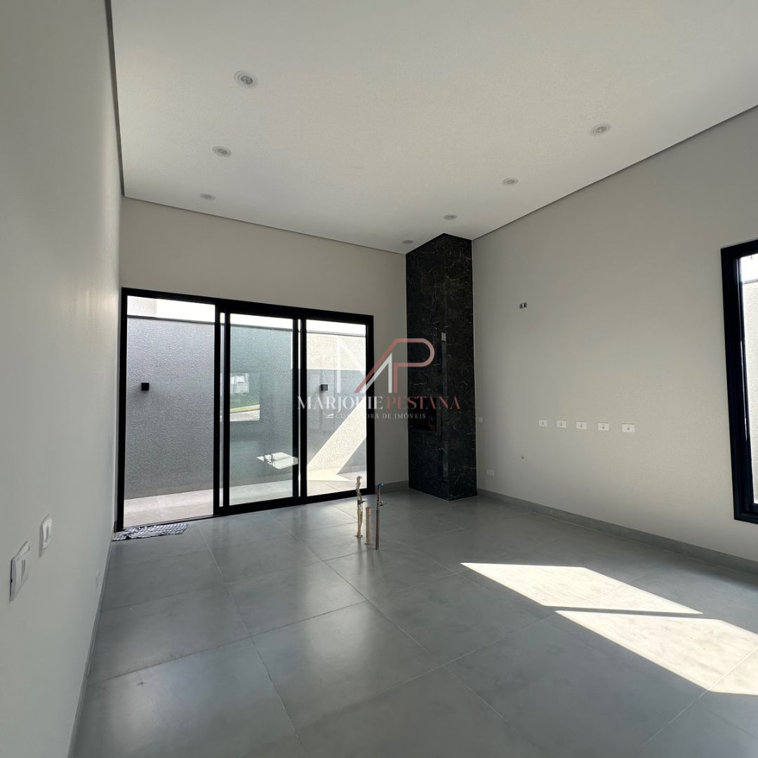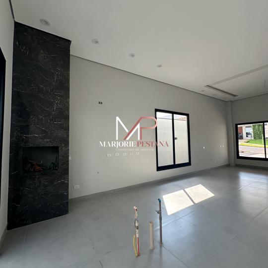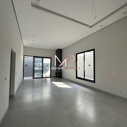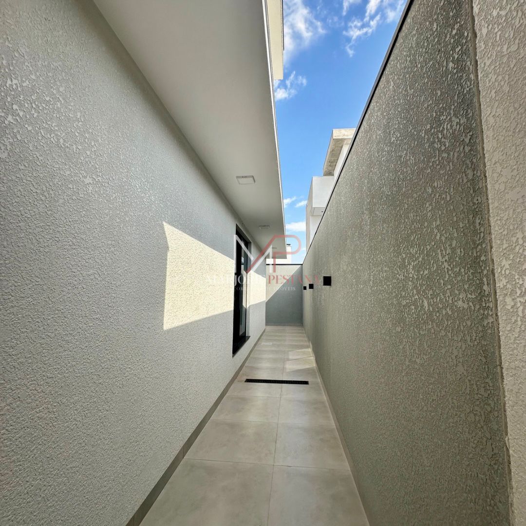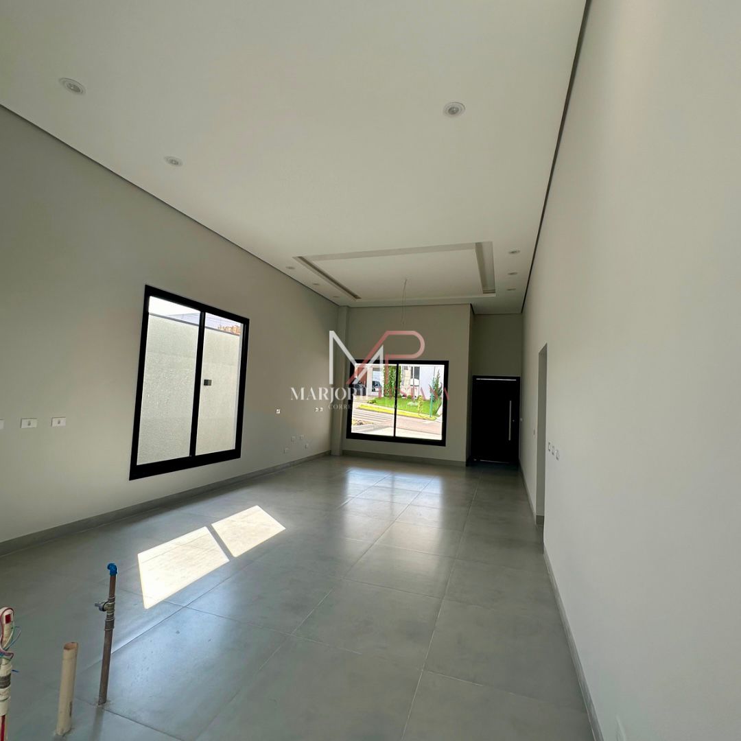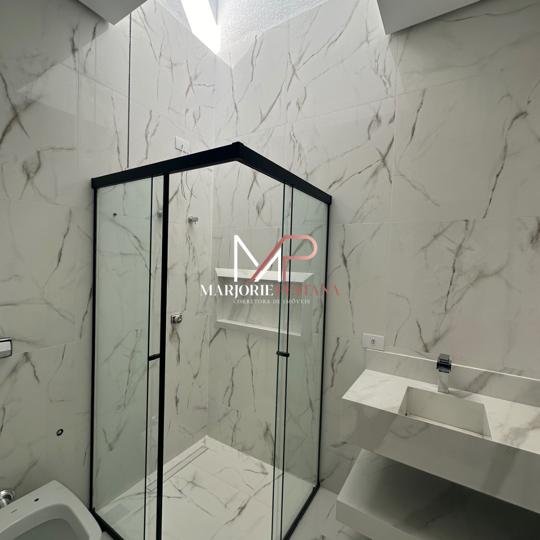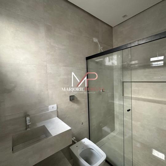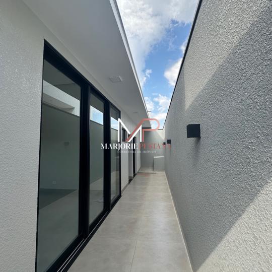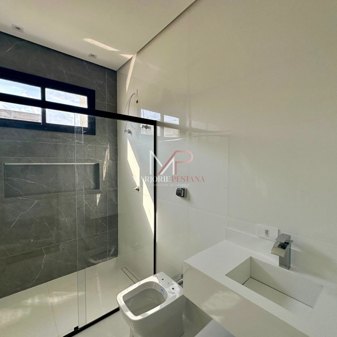 Contendo: 03 suítes, sala, área gourmet, área de serviço, lavabo externo, garagem coberta para 2 veículos, poço de luz, porcelanato 83x83cm interno e externo, janelas e portas de correr em esquadria de alumínio, rebaixamento de gesso em toda a casa com iluminação embutida, banheiros com bancadas e nichos em porcelanato, área gourmet com churrasqueira, textura projetada, massa acrílica e cimento queimado na pintura externa, Boyler e placas instalados, fundações e lajes com concreto usinado, materiais certificados PBPQ-H, infraestrutura para Ar condicionado, quadro VDI específico para internet, abrigo de gás com tubulação embutida .