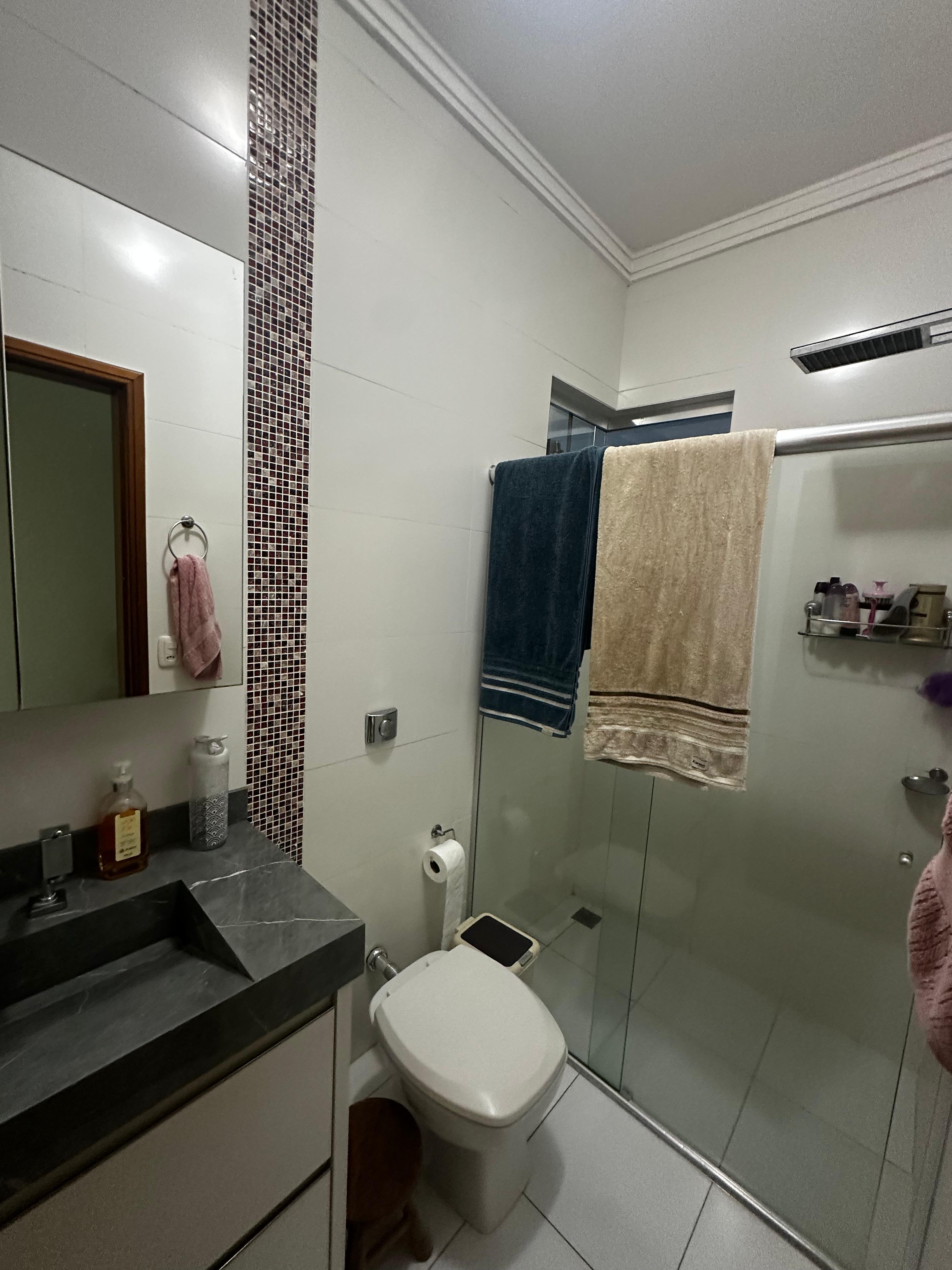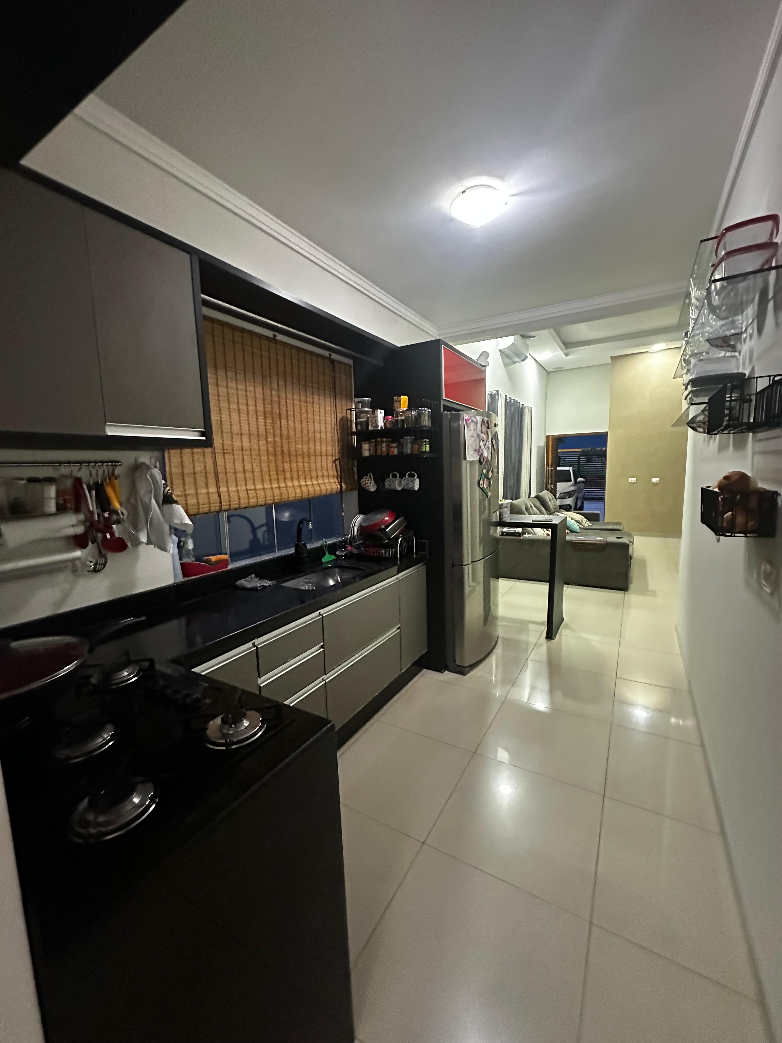 Contendo: 01 suíte (com móveis planejados), 02 quartos (com móveis planejados), sala com pé direito alto, bwc social, cozinha (com móveis planejados), área gourmet conjugada (edícula com churrasqueira), banheiro área gourmet. Portão eletrônico, lavanderia coberta. Garagem coberta para 01 carro, porém com espaço para até 3 carros.