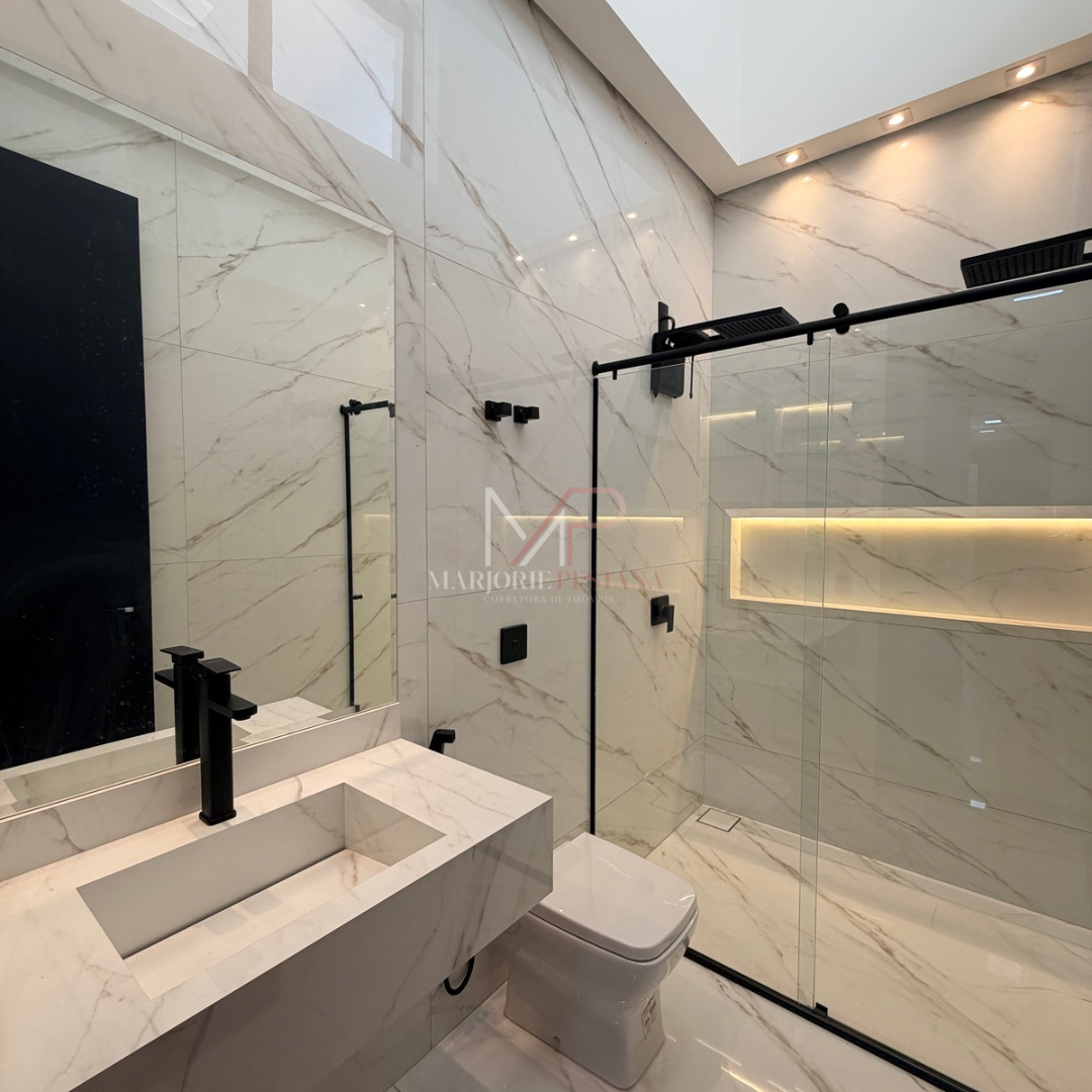 Contendo: 01 suíte com closet + 02 quartos, bwc social, sala de tv, ampla sala de jantar e cozinha gourmet com pé direito de 4.5 de altura, lavabo, lavanderia coberta. Entrada lateral com porta em alumínio.