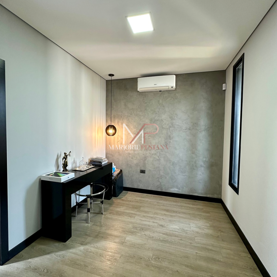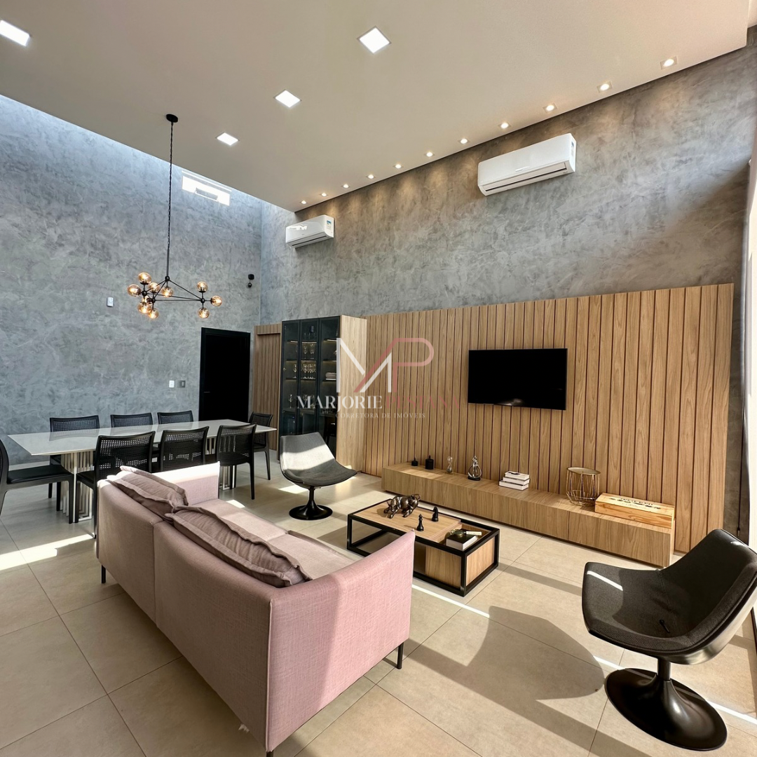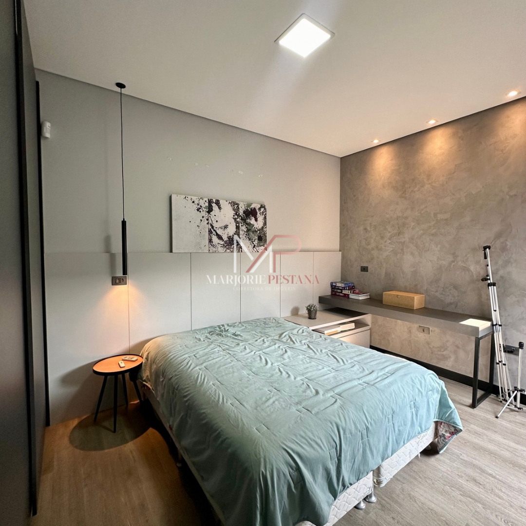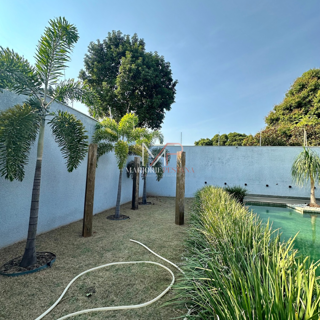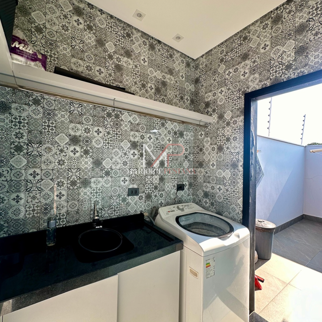 Contendo: 01 suíte com móveis planejados, 02 quartos com móveis planejados, bwc social, sala de TV, sala de jantar c/ ampla cozinha gourmet conjugada, escritório com lavabo. Área de serviço mobiliada, com estendal. Área de lazer com piscina borda infinita e paisagismo. Ampla garagem para veículos lado a lado.