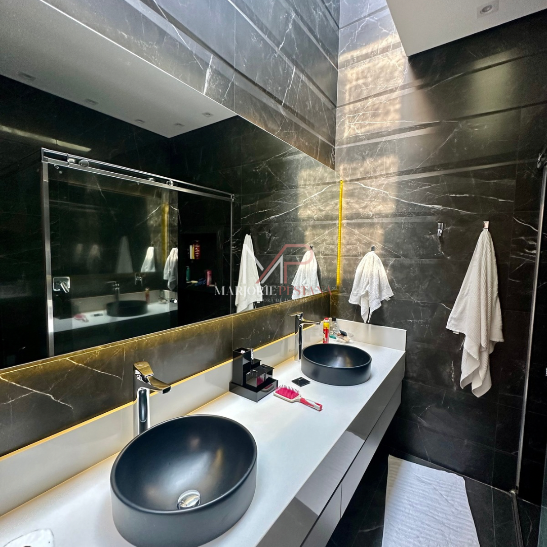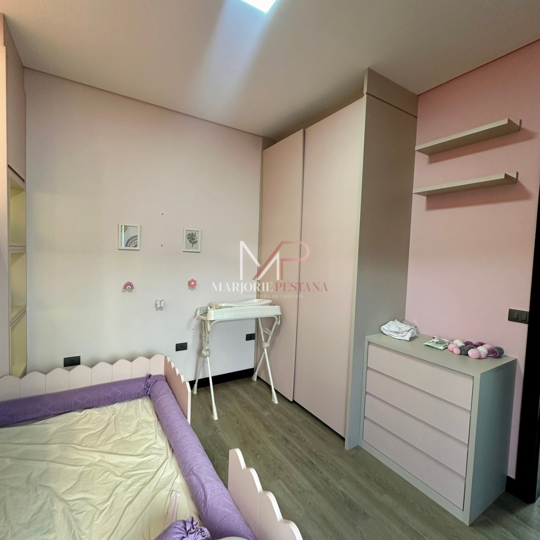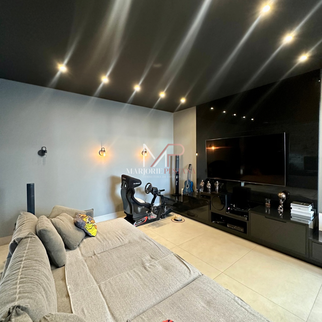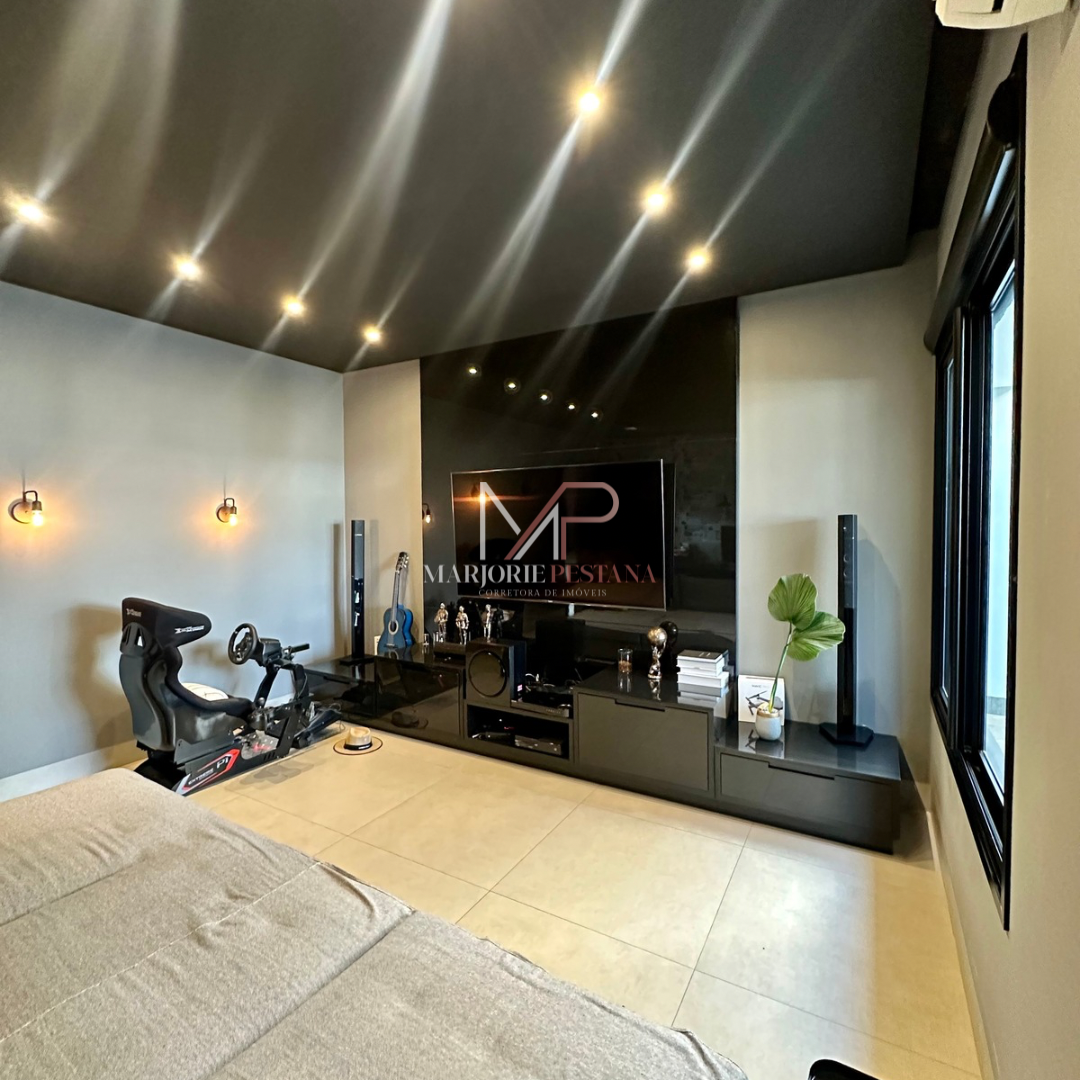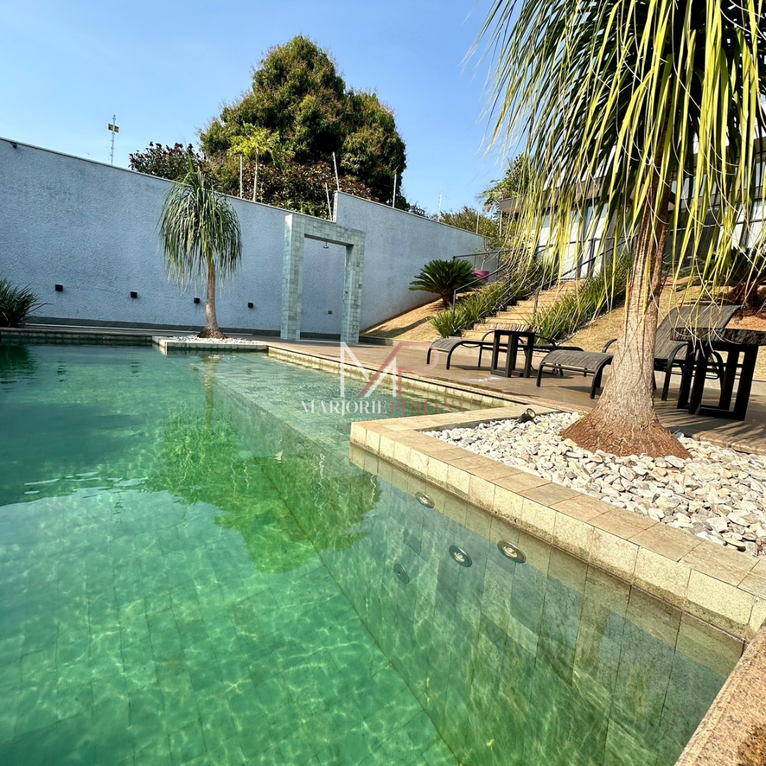 Contendo: 01 suíte com móveis planejados, 02 quartos com móveis planejados, bwc social, sala de TV, sala de jantar c/ ampla cozinha gourmet conjugada, escritório com lavabo. Área de serviço mobiliada, com estendal. Área de lazer com piscina borda infinita e paisagismo. Ampla garagem para veículos lado a lado.