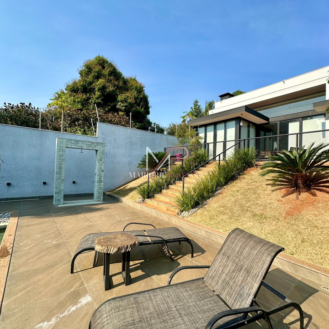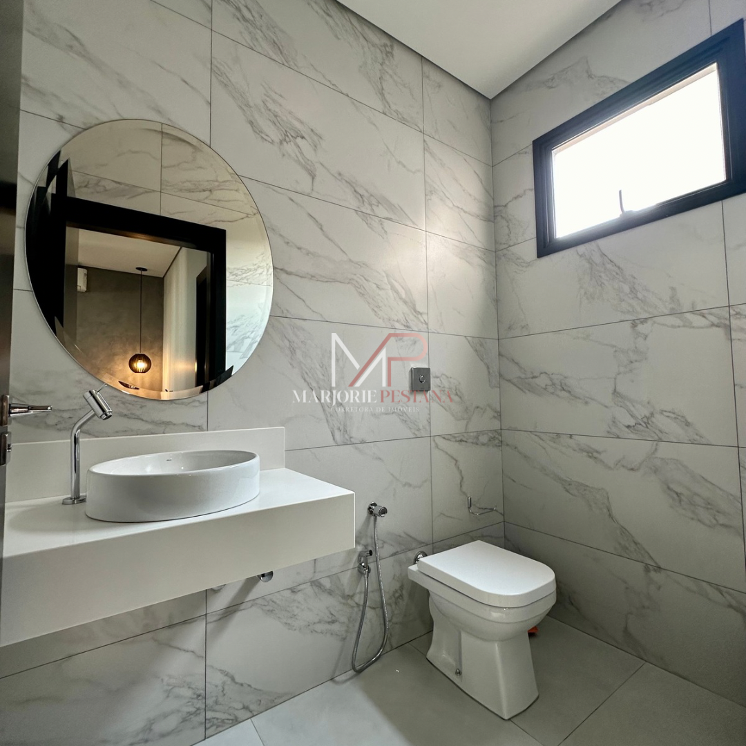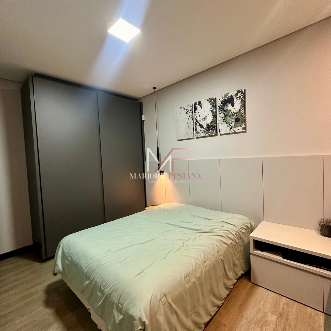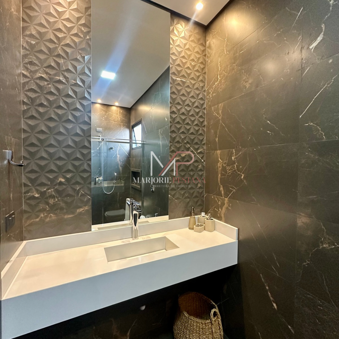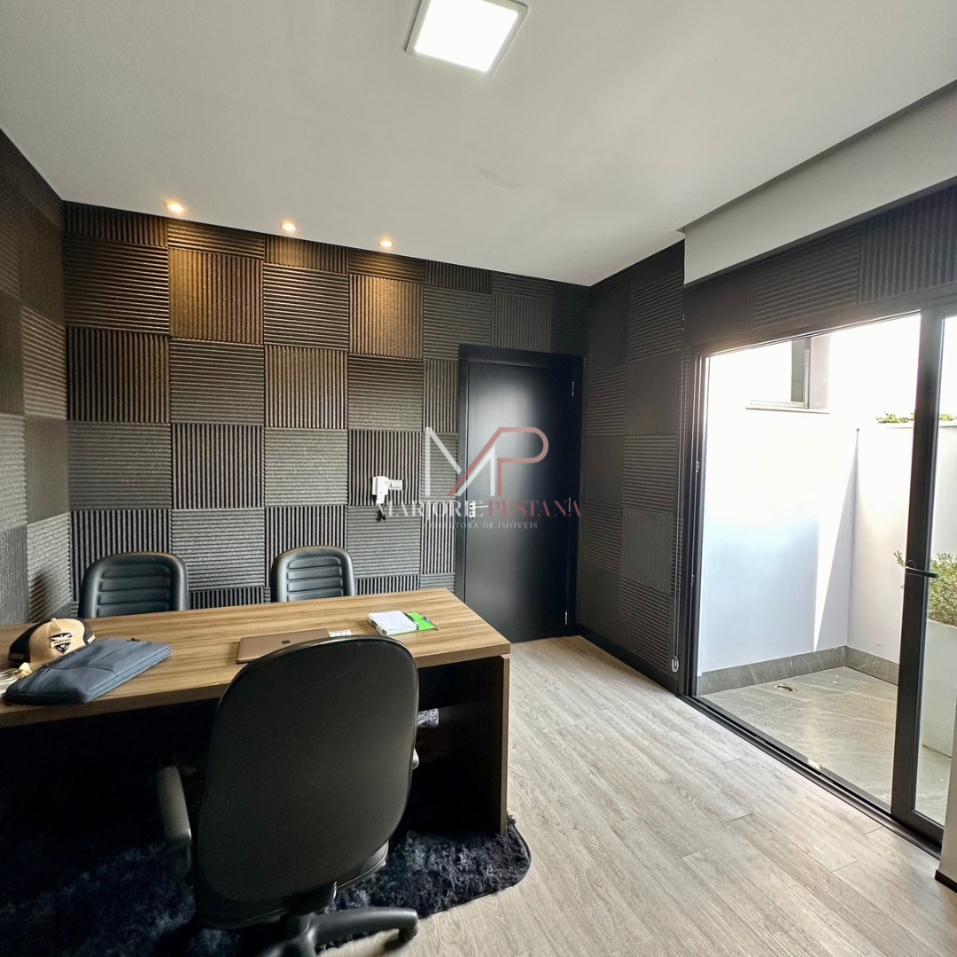 Contendo: 01 suíte com móveis planejados, 02 quartos com móveis planejados, bwc social, sala de TV, sala de jantar c/ ampla cozinha gourmet conjugada, escritório com lavabo. Área de serviço mobiliada, com estendal. Área de lazer com piscina borda infinita e paisagismo. Ampla garagem para veículos lado a lado.