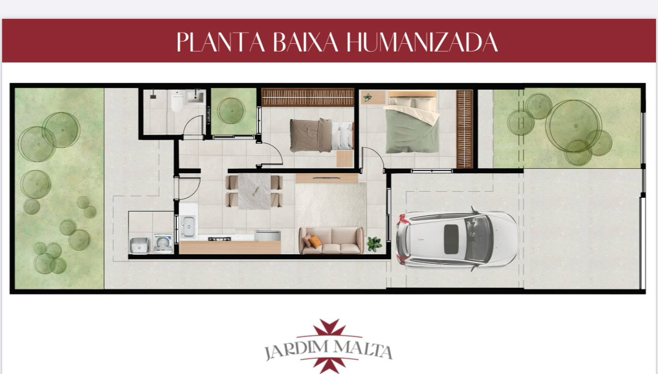 Contendo: 2 quartos, bwc social, sala e cozinha conjugadas, lavanderia e amplo espaço para futuras ampliações ou uma área gourmet.