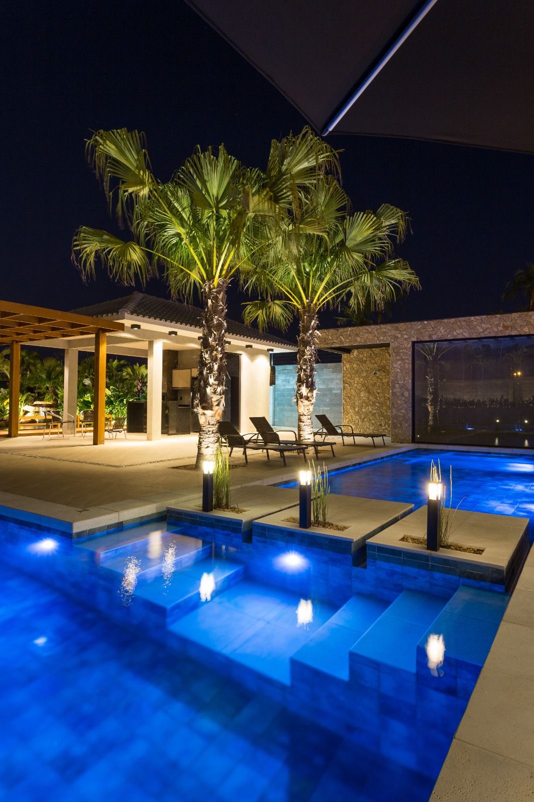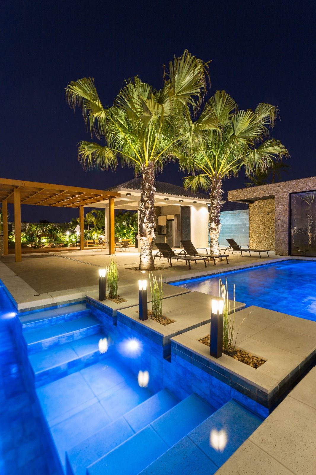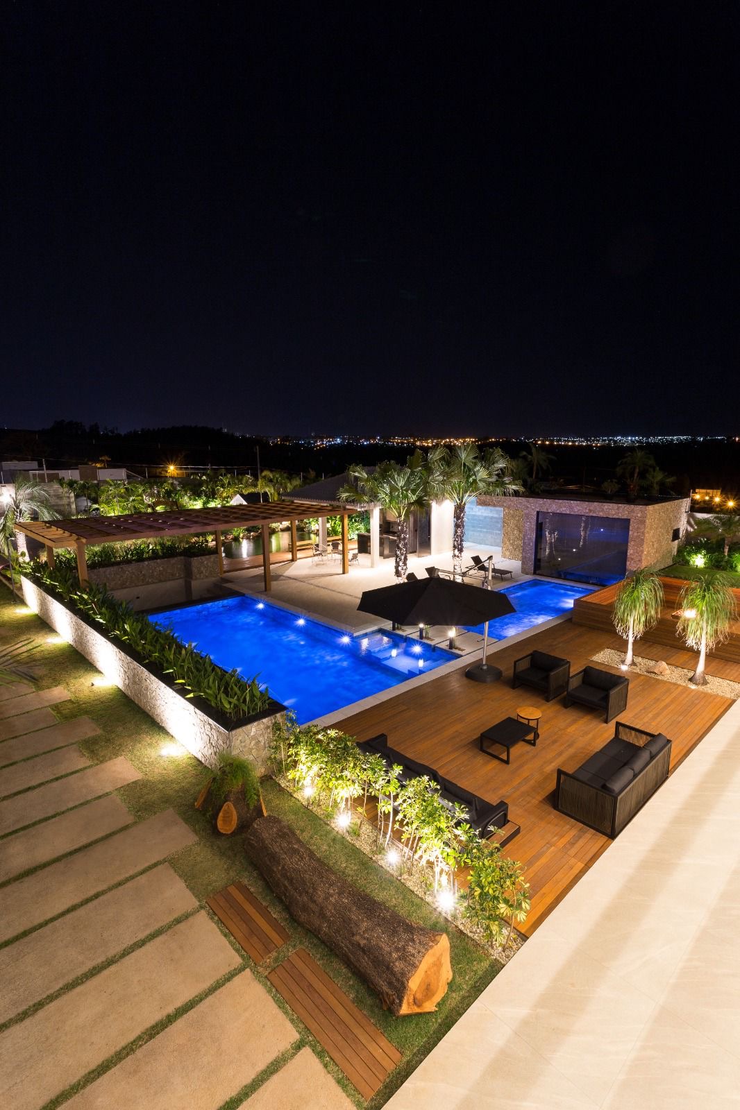 Parte externa: Piscina com 90m², possuindo cascata, iluminação, hidromassagem e aquecedor. Bwc social, sauna, lareira lago com 110m² com várias carpas de raça. Quiosque com churrasqueira, móveis planejados, geladeira. Lindo e amplo jardim com iluminação. Casinha de criança com móveis. Cama elástica grande. Quadra profissional de areia para Beach Tennis, Futevôlei ou Vôlei. Contém drenagem, irrigação para molhar a quadra e iluminação. Sistema de monitoramento e placas de energia solar.