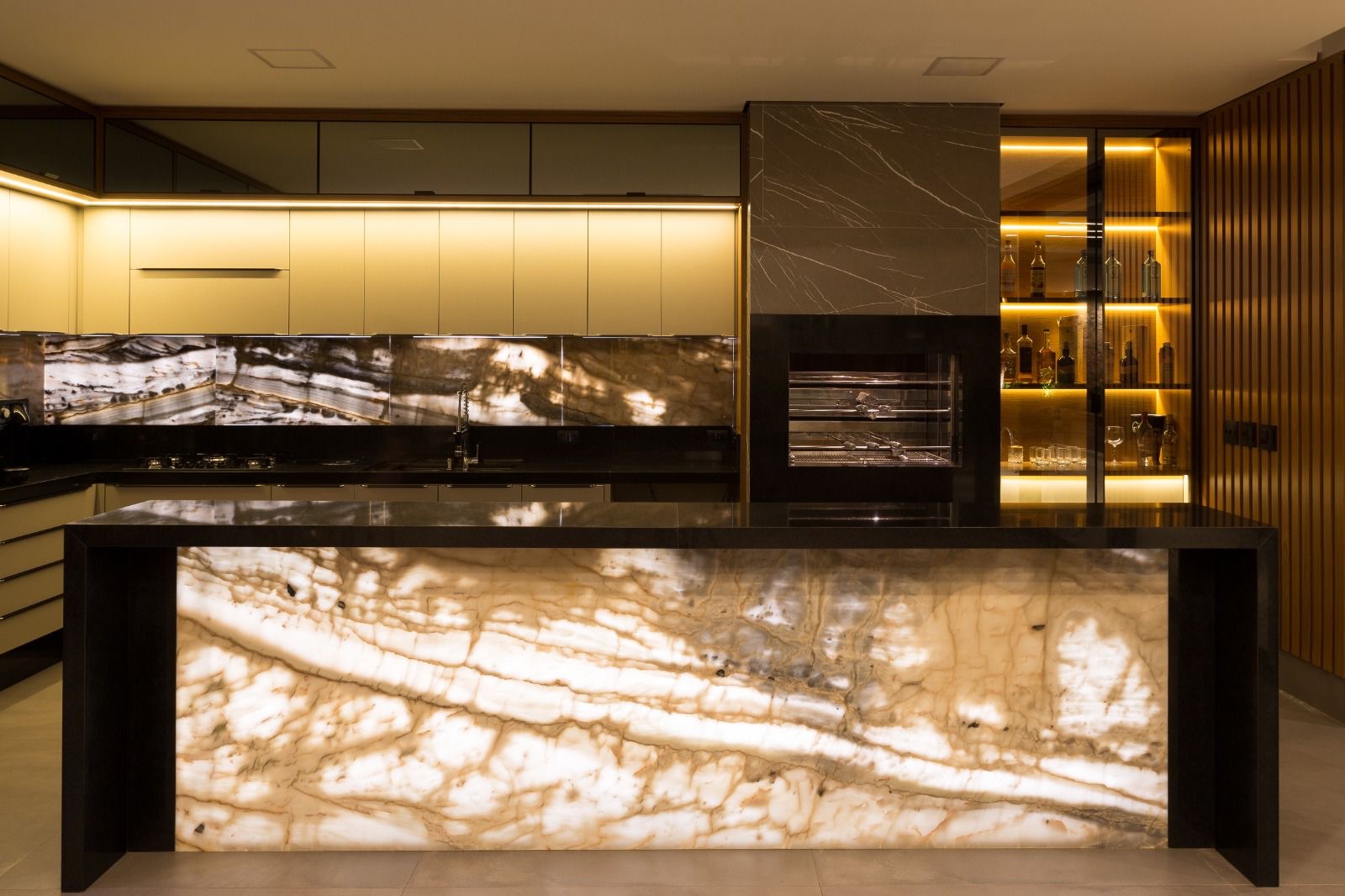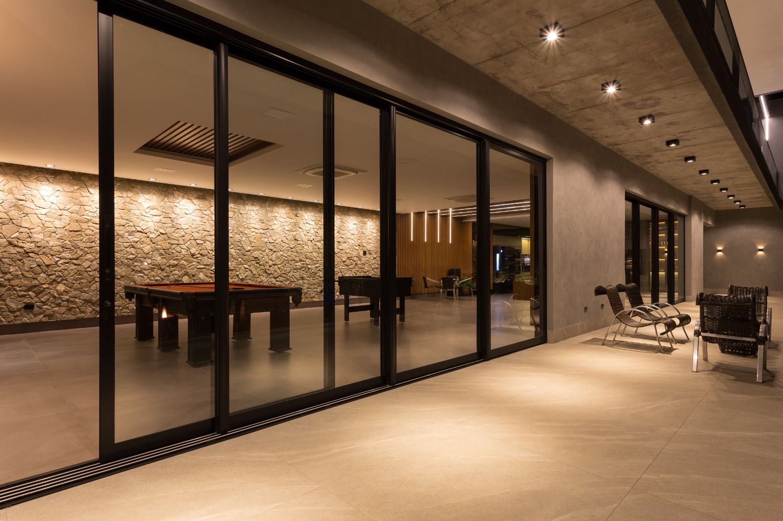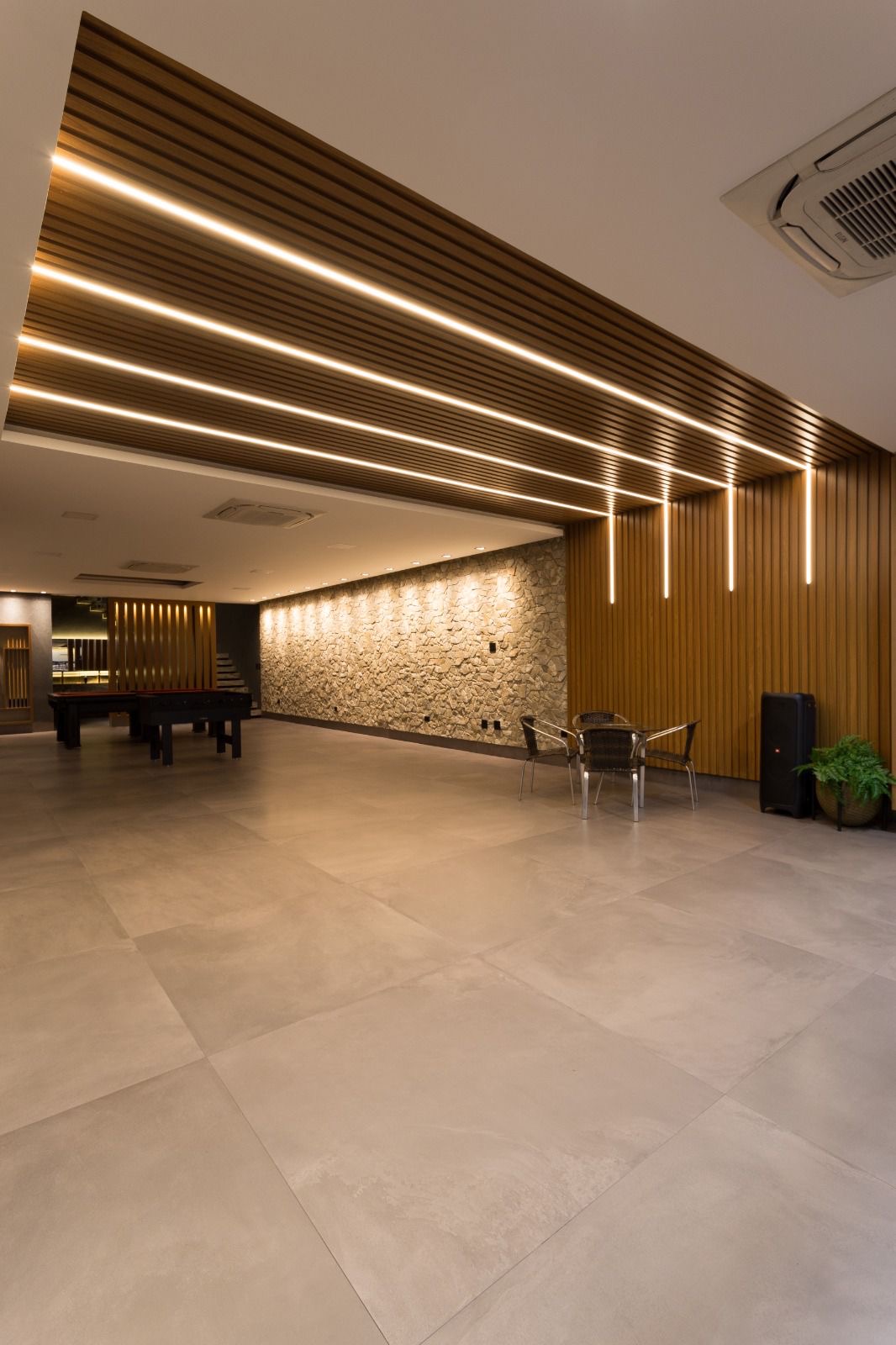 Parte Inferior: contém salão de 250m², 02 bwc social, cozinha completa com móveis planejados, geladeira, fogão, microondas, forno, filtro de água, cervejeira, churrasqueira, mesa profissional de sinuca, ping pong e pinbolim.