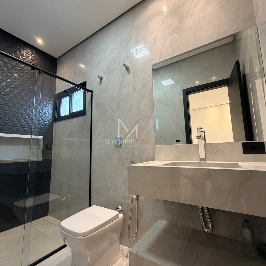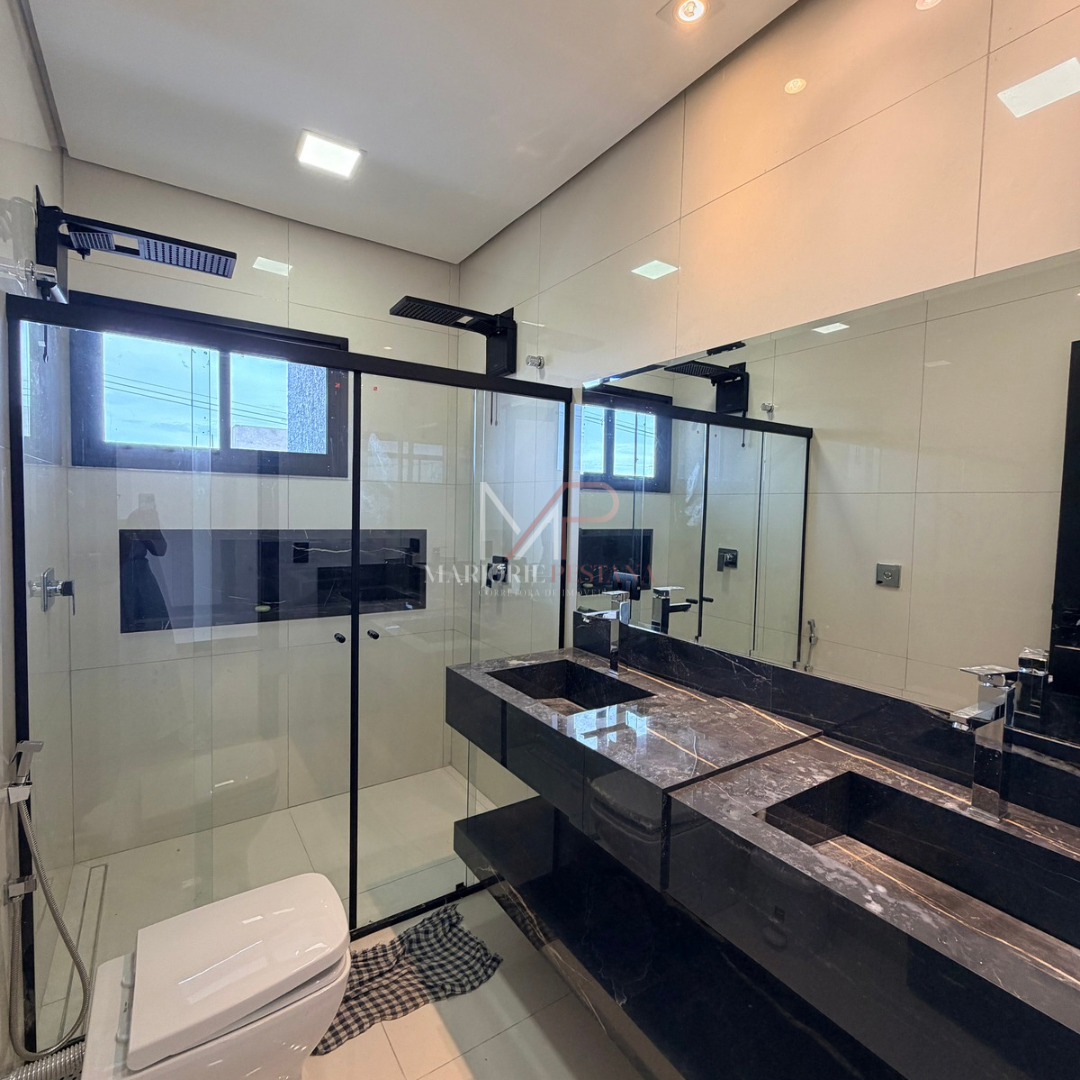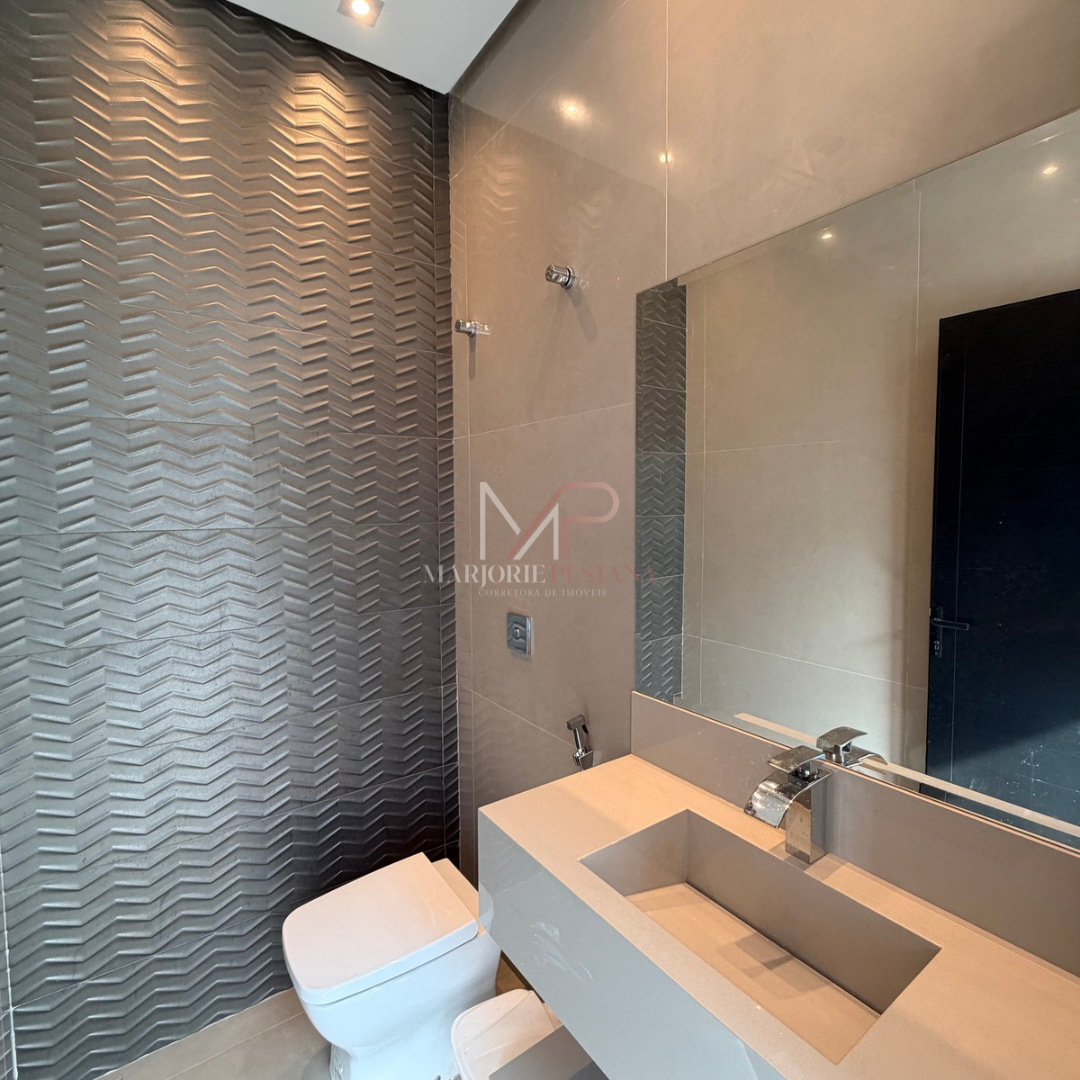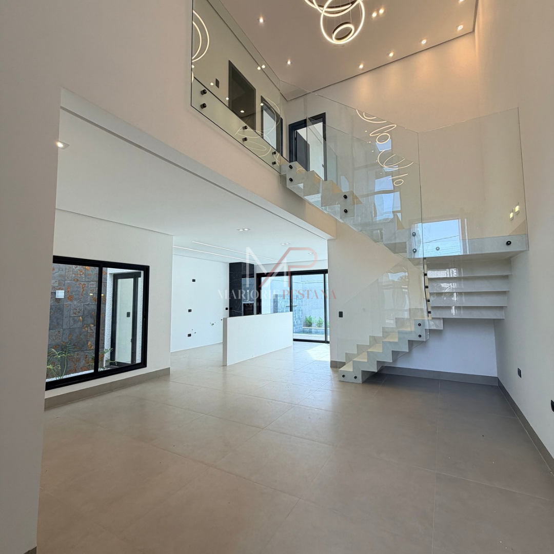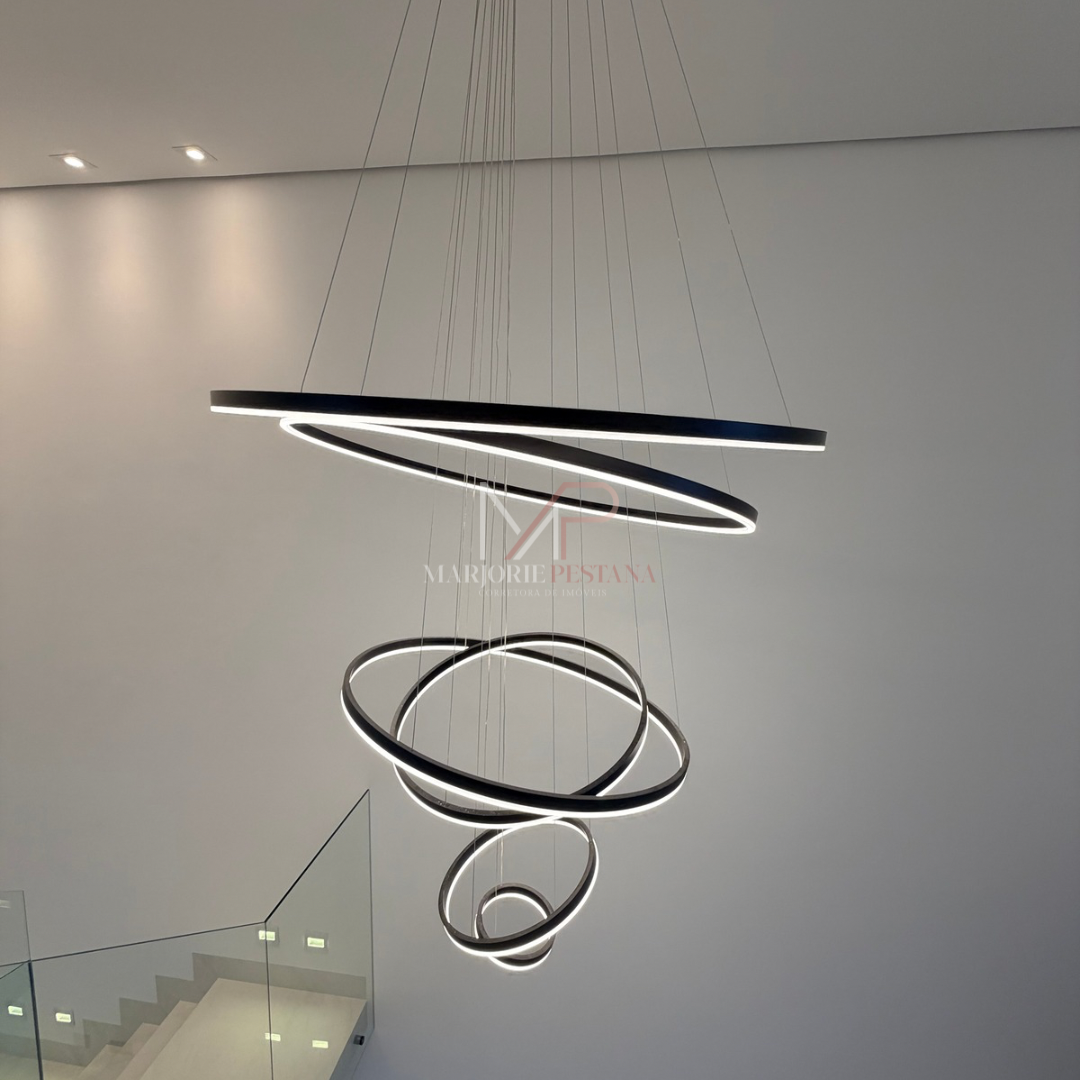 A residência contém fechadura eletrônica na porta de entrada, portão eletrônico, cerca elétrica, aquecimento solar, luminárias em LED, pisos em porcelanato e laminado de madeira, câmeras, pé direito duplo, janelas automatizadas, banheiros com bancada em porcelanato, lustre.